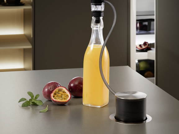 Takket være det innovative og enestående indbygningskoncept lægger BORA QVac ikke beslag på køkkenets arbejdsflader: Vakuumpakkeren befinder sig – som man kender det fra BORAs emfangsystemer – under arbejdspladen. Indbygningsvakuumpakkeren kan både monteres, så den flugter med arbejdsfladen, eller så står på højkant.