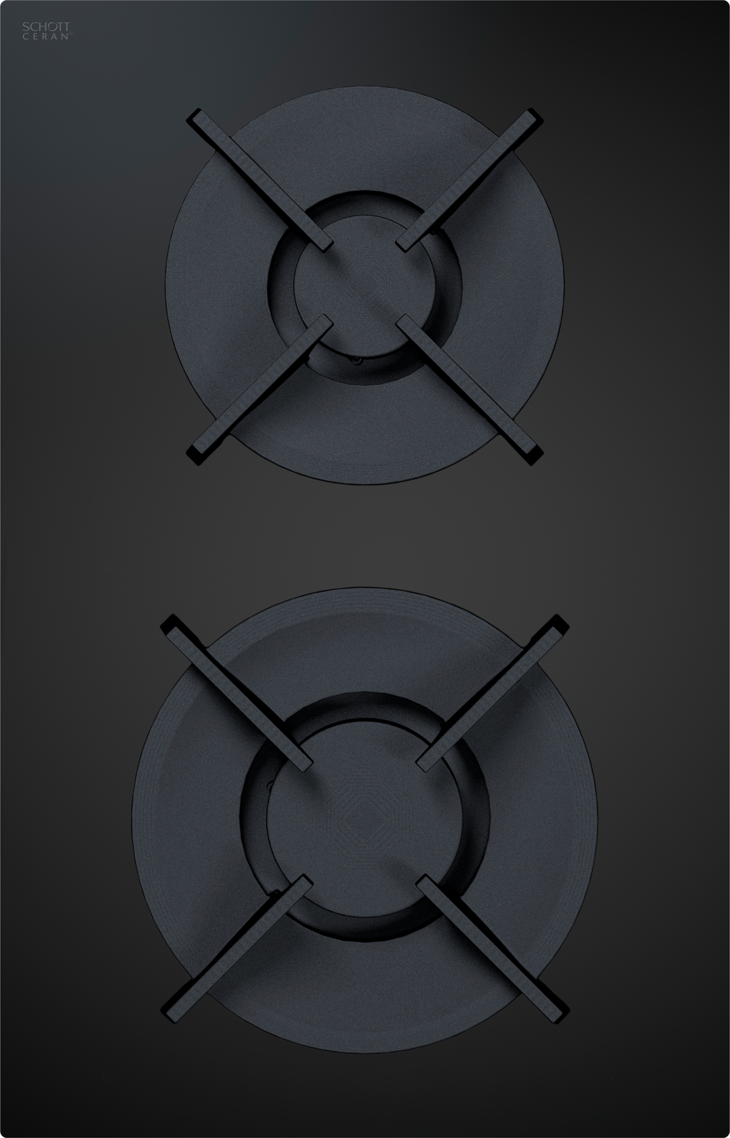 Außergewöhnliches Kochfelddesign mit reduzierter Topfträgerhöhe und abgesenkten Gasbrennern ermöglicht den optimalen Betrieb mit einem Kochfeldabzug und einfaches Handling aufgrund geringer Größe.