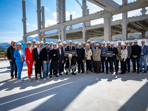 Mitte April war es nach der intensiven Planungs- und Genehmigungsphase so weit: In Niederndorf würdigte eine hochrangige wirtschaftspolitische Delegation unter Landeshauptmann Anton Mattle mit dem Besuch des Bauprojekts die Entscheidung, die der BORA Gründer und CEO Willi Bruckbauer getroffen hat. Der Bau einer eigenen Fabrik ist eines seiner bislang wichtigsten Projekte. Der Festakt mit Politik und Partnern markiert einen bedeutenden Schritt in der Entwicklung des mittlerweile fast 20jährigen Unternehmens. Eine Investition in die heimische Region ist in Zeiten konkurrierender nationaler Lohnniveaus keine Selbstverständlichkeit, sondern ein sichtbares Zeichen, welchen Stellenwert der heimatliche Standort für BORA hat. „Wir glauben an die Bedeutung der regionalen Wertschöpfung und engagieren uns für die Entwicklung unserer Gemeinschaft. Diese Produktionsstätte sehen wir als Kraftwerk für Innovation und Fortschritt. Sie schafft langfristigen Erfolg für BORA und die Region durch Wachstum und die Erzeugung neuer Berufsfelder.“ so Bruckbauer. Ein echtes Bekenntnis zur Region, das auch Landeshauptmann Anton Mattle würdigt: „Mit der Entscheidung, die erste eigene Fabrik in Niederndorf zu errichten, setzt BORA ein klares Zeichen für lokale Wertschöpfung.“