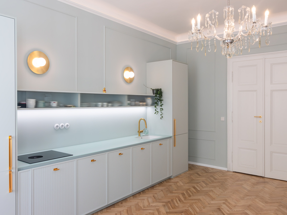 Helle Böden unterstreichen die sanften Nuancen. Sand- und Cremetöne schaffen ein unaufdringliches Ambiente zu hellem Parkett. Die Farbtöne Lavendel, Mintgrün oder Pfirsich harmonieren ausgezeichnet zu einem Stein- oder Fliesenboden in lichtem Grau. Tipp: Kombinieren Sie für einen spannenden, außergewöhnlichen Küchenstyle zwei oder mehr Pastelltöne miteinander. Besonders gut verstehen sich Nuancen aus einer Farbfamilie wie Flieder und Hellblau. Auch Kontraste begeistern – wie Rosé und Mint oder Apricot und Lavendel.