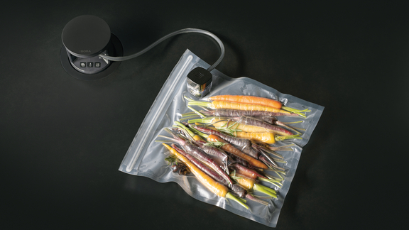 Für die optimale Haltbarkeit sorgt die Kombination aus Vakuumieren und Einfrieren – dabei wird zusätzlich Gefrierbrand vermieden. Dieser entsteht, wenn Luft an das Gefriergut gelangt, wodurch die Oberfläche austrocknet. Da vakuumierte Lebensmittel luftdicht verschlossen sind, kann kein Gefrierbrand entstehen. Durch das Vakuumieren mit dem BORA QVac und das anschließende Garen der Lebensmittel mithilfe des Spezialprogramms „Sous-vide-Garen“ im BORA X BO erzielen Sie beim Kochen ohne großen Aufwand Ergebnisse wie ein Profi.