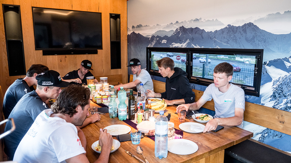 Radprofis müssen permanent auf ihre Ernährung achten: Wie viel Gramm Kohlenhydrate muss ich essen? Wie viel Eiweiß brauche ich zur Regeneration? Ist das Gericht auch sicher fett- und zuckerarm? Und wann ist der beste Zeitpunkt, um die Speicher aufzufüllen? Das ist eine Wissenschaft für sich und kann ganz schön anstrengend sein. Umso wichtiger ist es dann, dass die Speisen gute Laune verbreiten und die Jungs von BORA – hansgrohe gerne am Tisch Platz nehmen, zum Beispiel im BORA Kitchen Truck.