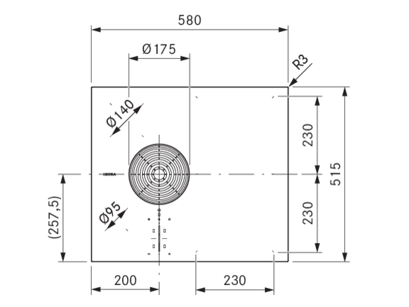 | Größe Kochzone hinten rechts | 230 x 230 |