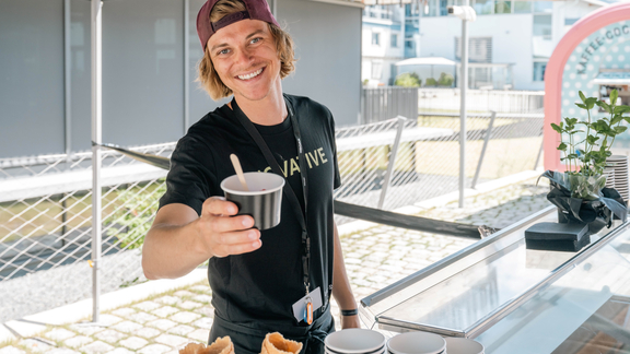 Großes Lob über die Auswahl und Zubereitung des Essens hörten auch die acht BORA Köche für alles, was sie beim Showcooking auf den BORA Kochfeldabzugssystemen für die vielen Hundert Gäste brieten und brutzelten. Mit den Gaumenwerk-Leckereien der Kufsteiner Metzgerei Juffinger wurden an allen Essensstationen ausschließlich Lebensmittel aus der Region serviert, ergänzt durch Stefanies Kaffeespezialitäten aus Bad Feilnbach und etwa 1820 Kugeln Eis der mobilen Gelateria der Straßenmeisterei.