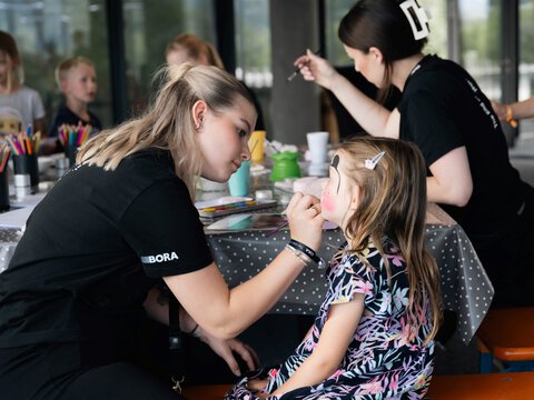 Die zweitätige Veranstaltung war rein intern organisiert worden. Etwa 55 BORA Mitarbeiter kümmerten sich an den Eventtagen um ein unterhaltsames Programm für Groß und Klein. So waren beispielsweise die Azubis für das Kinderprogramm zuständig und konnten ihre Ideen selbständig umsetzen. Strahlende Kinderaugen beim Pizzabacken, Kinderschminken oder der Straßenmalerei zwischen den Bürogebäuden waren die Belohnung dafür.
