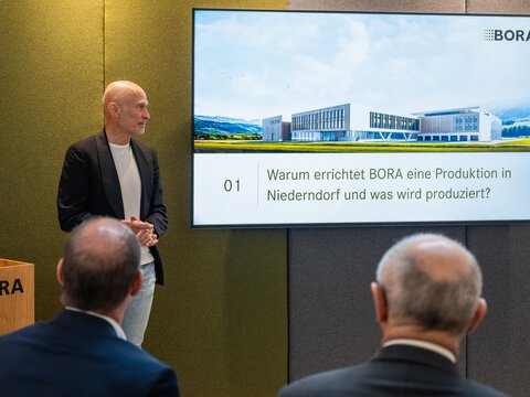 Die Fertigstellung der vertikalen Fabrik ist für das zweite Halbjahr 2026 geplant. Mithilfe regionaler Dienstleister und Gewerke wird die Architektur für dieses ambitionierte Vorhaben dank kurzer Wege und dem nachbarschaftlichen Einvernehmen mit Anliegern und der Gemeinde Niederndorf zügig errichtet werden. Offen und unvoreingenommen war der Wunsch nach einer BORA Eigenfertigung von allen Seiten geprüft worden. Die tatsächliche Umsetzung am bestehenden Firmenstandort in der heimischen Region ist ein Beweis dafür, dass regionale Standortpolitik und mutiges Unternehmertum viel für die lokale Wirtschaft bewirken können. „Dass sich ein Unternehmen wie BORA bewusst für Tirol entscheidet und nicht für einen Standort im Ausland, zeigt uns, dass wir attraktive Rahmenbedingungen bieten können.“, so Dr. Marcus Hofer, Geschäftsführer der Standortagentur Tirol, die die Betriebserweiterung und Standortentwicklung von Beginn an unterstützend begleitet hat.