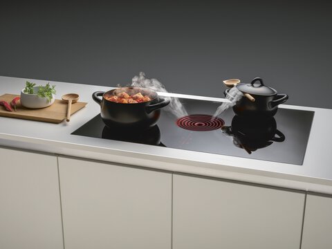 Anstelle der klassischen Dunstabzugshaube gibt es mit dem BORA Kochfeldabzug entsprechende Alternativen, die in den beiden Betriebsarten Umluft und Abluft erhältlich sind.