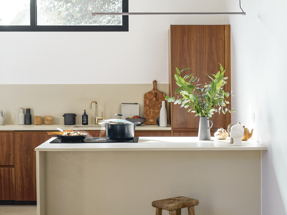 Tipp: Kombinieren Sie helles Arbeitslicht und eine indirekte Beleuchtung, etwa in Form von Spots unter den Hängeschränken, um Ihre Beton-Küche in Szene zu setzen. Die matten Kochfelder von BORA fügen sich nahtlos in eine Beton-Küche ein.