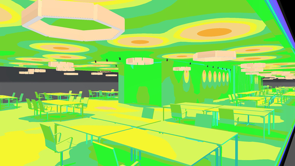 Das bisherige Gebäude, das von den Mitarbeitern schlicht „AT I“ genannt wird, war ein Pilotprojekt der bereits genannten HCL-Technik. Es ging uns bei der Lichtplanung vornehmlich um gezielte und vordefinierte Beleuchtung der Arbeitsplätze durch Einzelpendelleuchten.