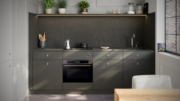 Tipp: Optik und Haptik von Schiefer bei gleichzeitig kratzfester, pflegeleichter Qualität bieten Arbeitsplatten in Schieferoptik.