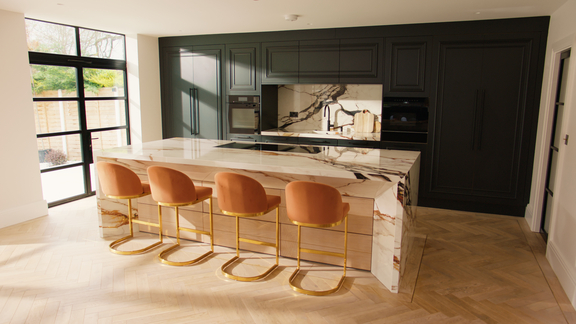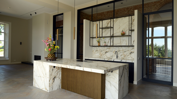 Elegance is the trump card in the Art Deco kitchen. This also applies to the colour palette. The style harmonises with combinations of velvety black, gold and bold tones such as violet, midnight blue and emerald green. Delicate shades such as rosé or a soft jade green are also tried and tested. In combination with certain materials, you can create a glamorous look: