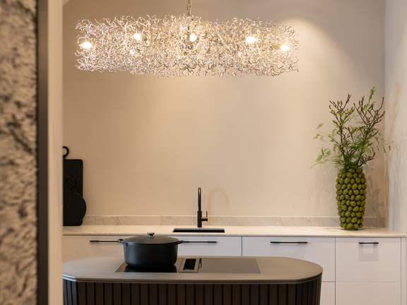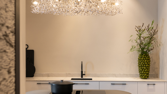 In an art deco kitchen, this is the motto: More is more. Eye-catching decorations, shiny surfaces or opulent chandeliers arranged stylishly above a kitchen island lend the room a unique character. Looking for examples?