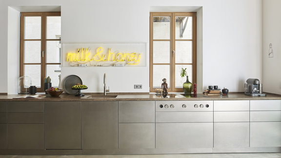 The Bauhaus style is characterised by clear structuresand a functional room layout. The work surface takes centre stage - generously dimensioned, robust and precisely positioned. The design often follows a horizontal structure of worktop, base units and wall units.