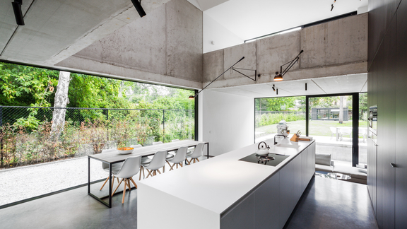 | Materials | Concrete, stainless steel, glass | Wood with a light or dark grain as an accent, for example in the form of a large dining table, creates a cosy atmosphere. |