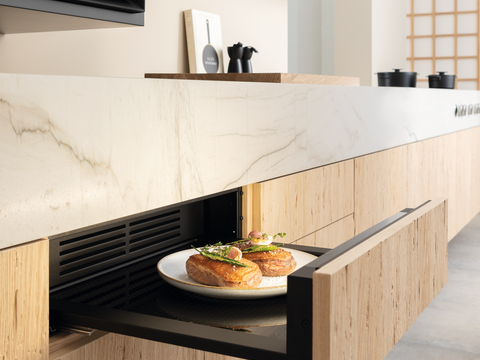 With the classic functions – which can be selected using the handy presets – you can pre-heat or reheat meals, keep food warm and gently cook. You can also use the drawer to prove dough, dessicate fruit, make yoghurt, dry herbs or heat up crockery.