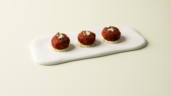 Serve the vegan beetroot patties with Dijon mustard dip.