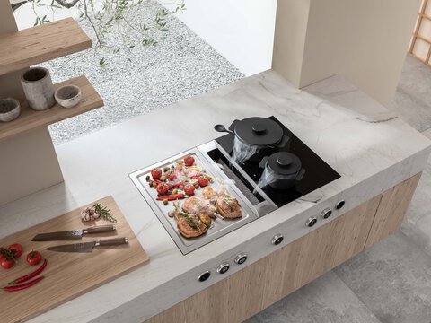 Have a query about cooktop extractor systems? Don’t worry. Our step-by-step instructions show you how, for instance, to deactivate the child lock on your BORA appliance or perform a reset. If your cooktop extractor system beeps a lot or is locked, find out in our appliance tutorial how to solve these issues and unlock the cooktop. You can also find quick and easy instructions on how to set the volume and call up the menu. Would you like to activate the bridging function on your surface induction cooktop to combine two cooking zones? Our instructions will show you how step by step.