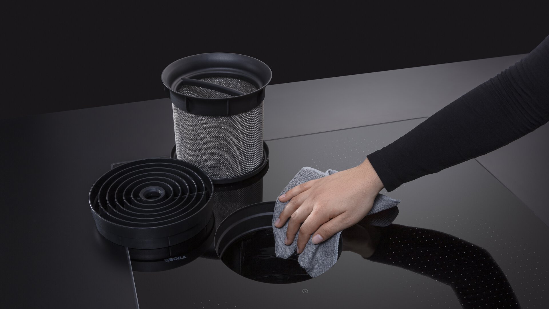 In your kitchen, BORA appliances not only ensure perfect cooking results but also fresh, clean air. Whether in cooktop extractor systems, the BORA X BO steam oven or the BORA refrigeration systems, integrated high-performance filters ensure optimum air quality and hygiene. So that these filters work efficiently, regular cleaning is a must.
