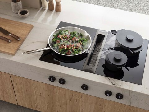 A highly efficient activated charcoal filter neutralises all odours, even when cooking fish. For optimum performance, the filter must be replaced regularly. Users can do this without removing any screws or components. Instead, the filter is simply replaced by lifting up the display flap on the front of the appliance. This is a function that is exclusive to the BORA X BO.