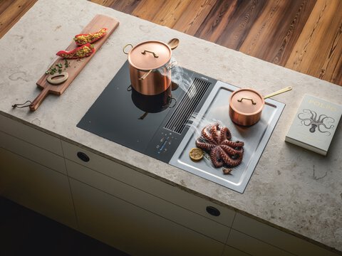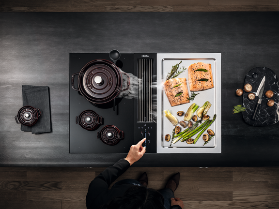 Do you like to cook most dishes on a gas hob, but others on an induction hob? With BORA, you don’t need to choose between them. In the BORA Professional and BORA Classic lines, gas and induction can be combined in a single cooktop. Do you like experimenting in the kitchen and have a passion for Asian cuisine? How about an induction cooktop combined with a teppanyaki grill – the stainless steel grill from Japan – or a wok cooktop? BORA offers you a range of options for your cooktop.