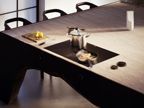 We generally differentiate between stand-alone cooktops and cooker hobs. A stand-alone cooktop has its own operating elements and can be placed just about anywhere in the kitchen.