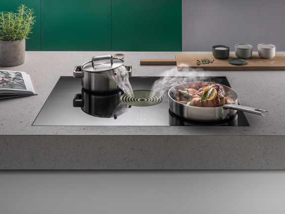 As well as this flexibility when cooking, surface induction cooktops also have the advantage of having an attractive, very elegant design, as only very discreet cooking zone markings divide up its surface.