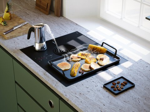 A stainless steel teppanyaki grill usually has two cooking zones that can be set separately. This enables you to sear a steak on one side, whilst vegetables are slowly cooking on the other. A Tepan stainless steel grill is available in the BORA Professional and BORA Classic cooktop ranges.