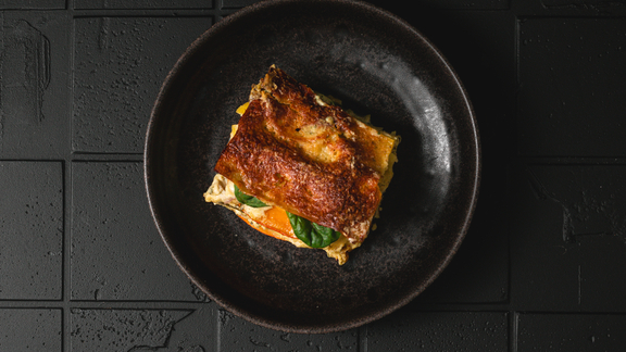 Spread some sauce on the bottom of an oven dish, put some lasagne sheets on top and cover with the pumpkin & spinach mixture.