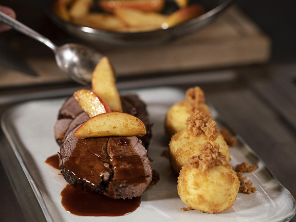 Long-fibre, connective tissue-rich meat such as shoulder, neck or leg is best suited for braising. Long cooking times ensure a tender consistency.