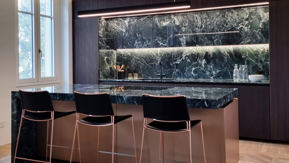 Black marble is rare and sought-after. Depending on the version, it has gold, silver, soft or dark grey highlights that give it an exquisite look. Black kitchens are synonymous with a stylish, modern aesthetic - and marble emphasises this effect.