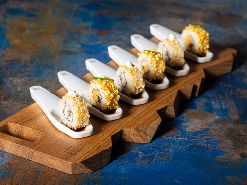 Whether you serve them as an amuse-bouche, a small starter or part of a larger buffet, you can make many dishes looks stylish by serving them on spoons. As a rule of thumb, make sure that you have enough spoons for all of your guests.At any rate, arranging food on spoons is an unusual presentation method that offers guests a special gourmet experience and a guaranteed taste explosion.