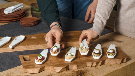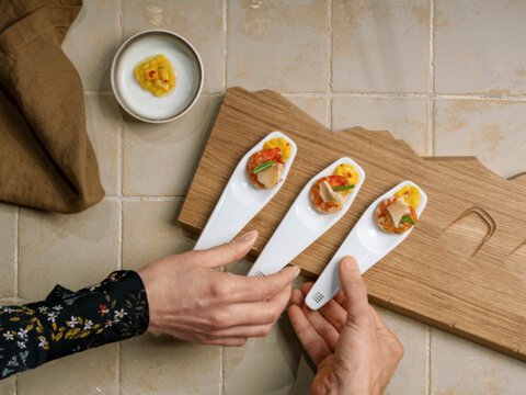 Sometimes all you need to serve large culinary appetisers are small, elegant porcelain spoons. These offer enough space to leave a lasting impression - both in terms of flavour and appearance.