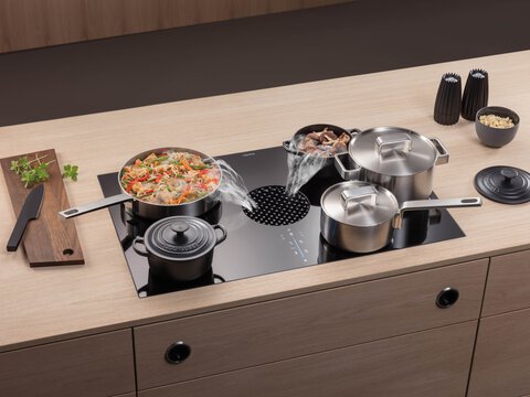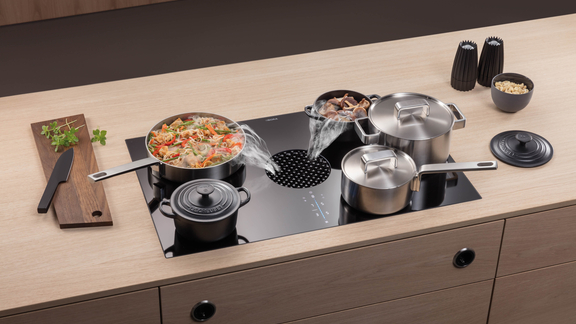 The BORA X Pure also boasts impressive technology with a bridging function that allows the front and back cooking zones to be combined, a three-stage heat retention function and a central touch operating panel (sControl) with a vertical touch slider to control the extractor and cooktop functions quickly and intuitively.