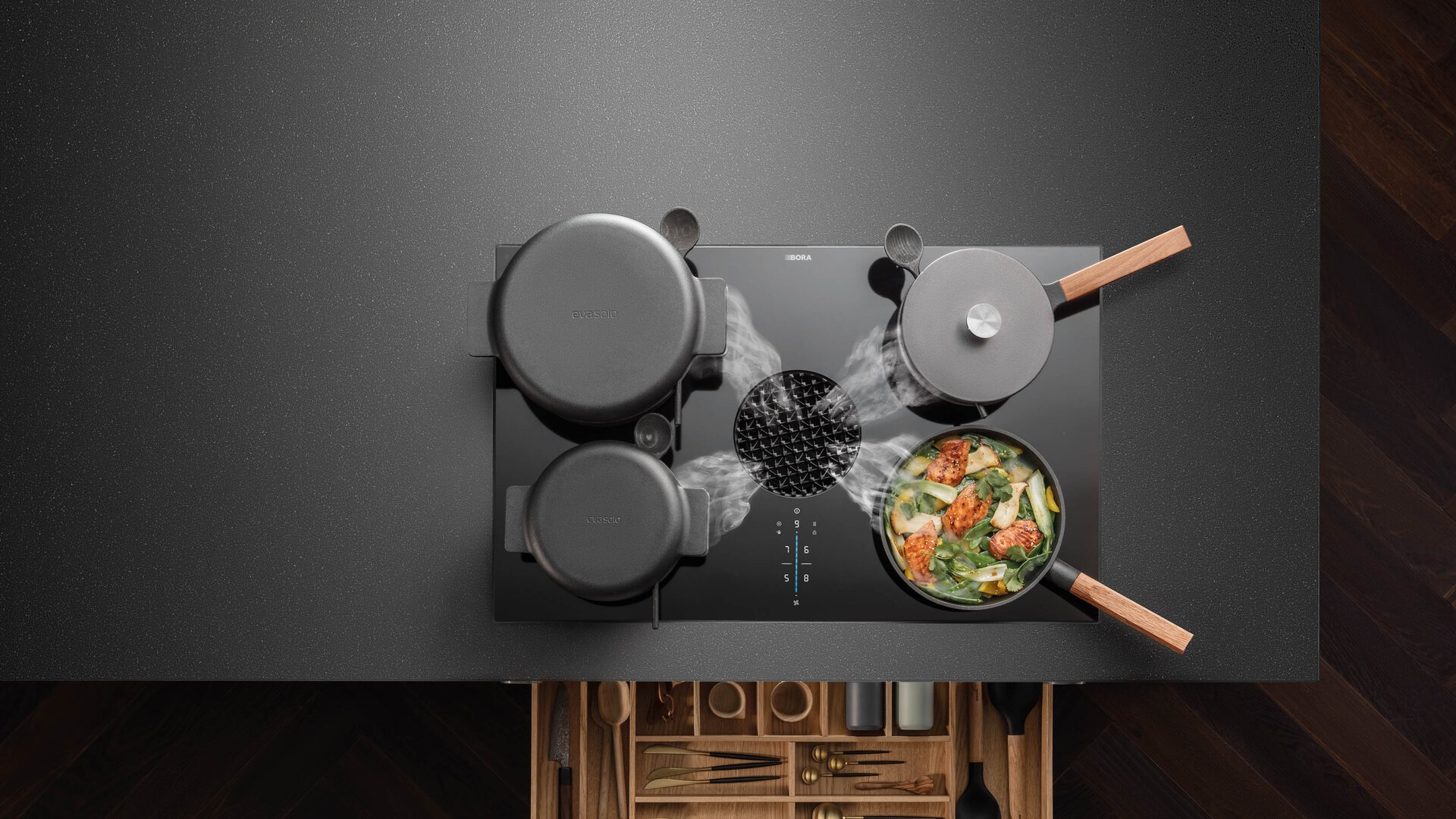 The BORA Pure activated charcoal filter PUAKF must be changed after approximately 150 operating hours or when odours are not being filtered as effectively or extractor performance drops.