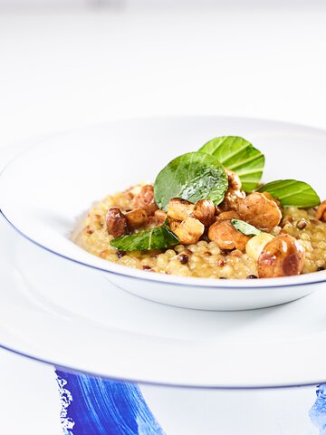 Añadir el caldo a las verduras e introducir en el horno en el nivel inferior.