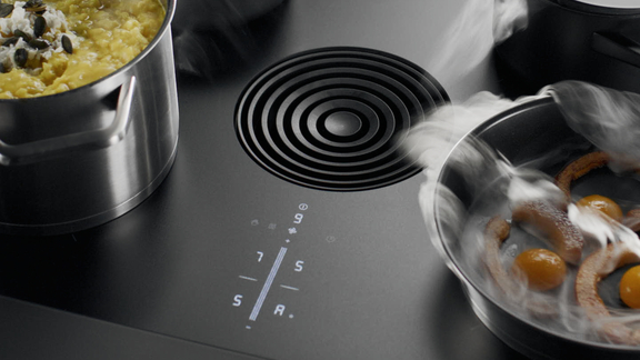 Las cuatro zonas de cocción en dos tamaños aprovechan de forma óptima toda la profundidad de la placa de cocción de 51,5 cm, con una zona trasera ideal para utensilios pequeños y una zona delantera para cazuelas y sartenes de mayor tamaño.