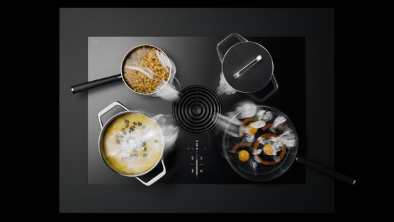 El BORA Pure resulta ideal para armarios de 80 cm de ancho con sus cuatro zonas de cocción redondas en dos tamaños, permitiendo el aprovechamiento óptimo de toda la profundidad de la plaza de cocción de 51,5 cm.