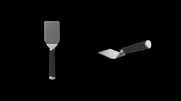 The BORA Tepan spatula is perfectly designed for use with the BORA Tepan stainless steel grill. The two front corners of the stainless steel head have been rounded with the corresponding radius to fit into the recessed area of the stainless steel grill and scoop up sauces or cooking juices. The conical shape of the spatula handle makes it particularly ergonomic while a recessed grip enables good handling.