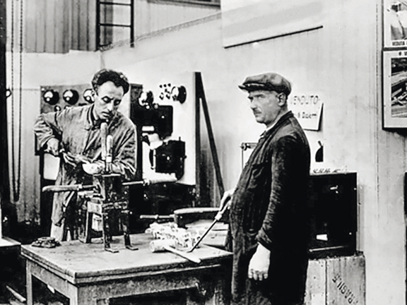 En 1931, lorsqu'il a terminé son prototype d'un nouveau type de cafetière pour cuisinière, l'espresso ne pouvait être bu que dans les cafés italiens : On le préparait dans de grandes machines à espresso. Celles-ci pressaient la vapeur d'eau chaude du haut vers le bas à travers le tamis à café rempli. Mais Alfonso Bialetti, dit-on, était fasciné par un appareil appelé "Lisciveuse" : une sorte de machine à laver dans laquelle les femmes de son village natal du Piémont lavaient leur linge. Le système était simple : De l'eau a été chauffée. Lorsqu'elle bouillait, elle remontait par un tuyau et se déversait, mélangée à de la lessive, sur le linge.
