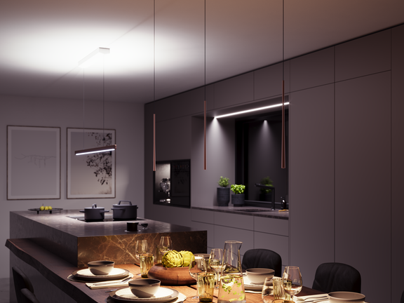 Un bon éclairage fonctionnel dans la cuisine est indispensable pour travailler et cuisiner de manière détendue et concentrée, notamment lorsque vous manipulez des couteaux ou tout autre ustensile tranchant.