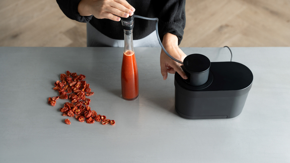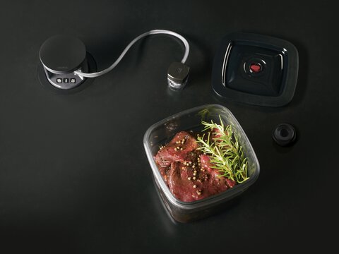 Les amateurs de barbecue comme les chefs apprécient particulièrement la fonction de marinade et l’intensification des saveurs offertes par le BORA QVac. La combinaison d’une pression négative alternée et d’un anneau spécial de marinade sur la boîte hermétique permet de réduire considérablement le temps de marinade. Au lieu de s’imprégner lentement pendant plusieurs heures, voire plusieurs jours, la marinade pénètre en profondeur à l’intérieur des aliments en seulement dix minutes. Les huiles aromatisées et le tzatzíki peuvent être préparés tout aussi rapidement.