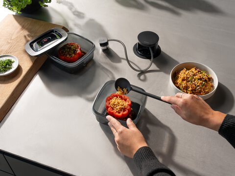 Mariner de la viande en quelques minutes, refermer hermétiquement bouteilles et bocaux, prolonger la conservation des aliments. Les nombreuses applications du système de mise sous vide intégré de BORA sont désormais accessibles au-delà de la cuisine. Avec le QVac Move portable, BORA propose une version flexible, idéale pour les résidences de vacances, les camping-cars ou les cuisines secondaires, et pour tous ceux qui ne peuvent pas intégrer l’appareil à leur plan de travail, disponible jusqu’à maintenant en version encastrable.