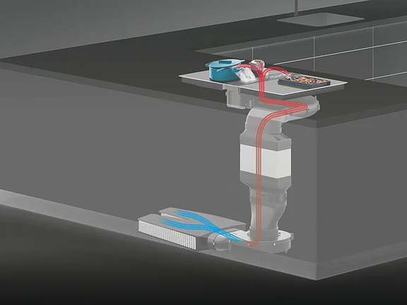 Toujours silencieux, même à plein régime : le système repose sur une canalisation d’évacuation optimisée et un ventilateur extrêmement silencieux. Il ne perturbe ainsi ni la concentration, ni les conversations pendant la préparation des repas.
