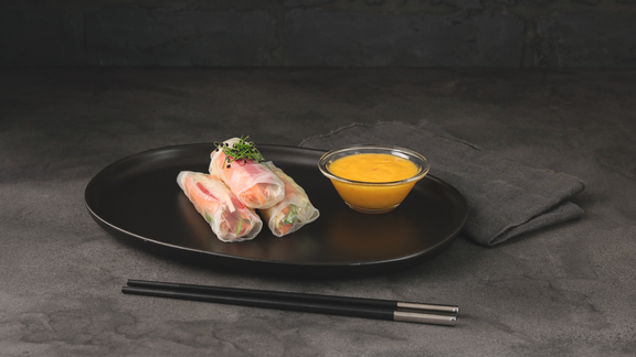 Servire gli involtini estivi preparati con la salsa.