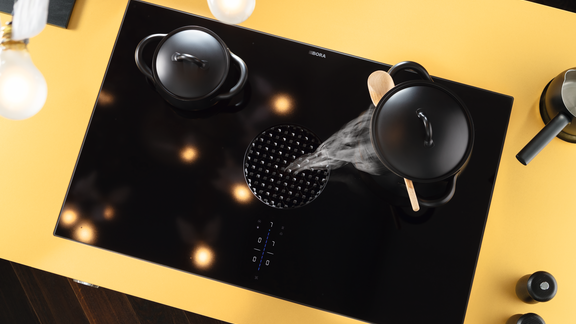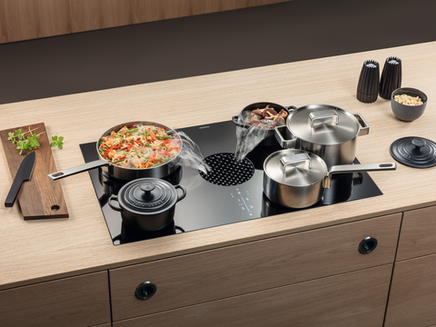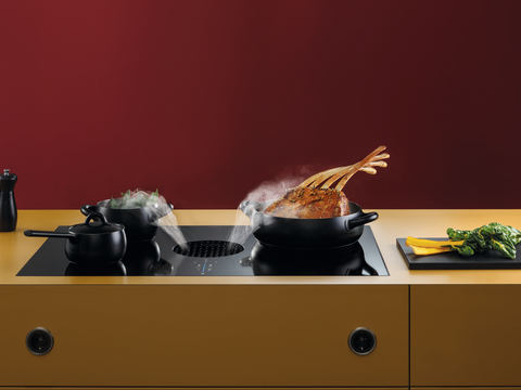 Le zone cottura a induzione "FULL" particolarmente grandi di BORA X Pure assicurano un calore omogeneo su tutta la superficie. La funzione bridge consente di combinare insieme la zona cottura anteriore e posteriore per facilitare la cottura con pentole e bistecchiere che necessitano di molto spazio. La funzione mantenimento calore a tre livelli è un'altra funzionalità della nuova BORA X Pure con la quale è possibile scegliere liberamente tra tre livelli diversi di temperatura per tenere al caldo le pietanze oppure per terminare la cottura ad una temperatura ottimale e costante senza correre il rischio di bruciarle. La potenza dell'aspiratore per piano cottura si regola autonomamente grazie a un sistema di aspirazione automatica per piano cottura. Questa funzione consente all'aspiratore per piano cottura di orientarsi sempre verso la zona per cui è stato impostato il livello di potenza maggiore.