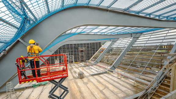 Onze nieuwe flagshipstore in Herford wordt razendsnel gebouwd. En de moderne gevel, die naar voren helt en ongetwijfeld al van verre te herkennen is, lijkt ook gevormd te zijn door een sterke wind. De dragende stalen elementen zijn geplaatst en de betonnen vloer is gestort. En nu? Terwijl de gevel wordt voltooid en de installaties binnen in het gebouw in volle gang zijn, bereiden we ons voor op de topping-out ceremonie. Zo'n architectonisch icoon moet immers een passend welkom krijgen.