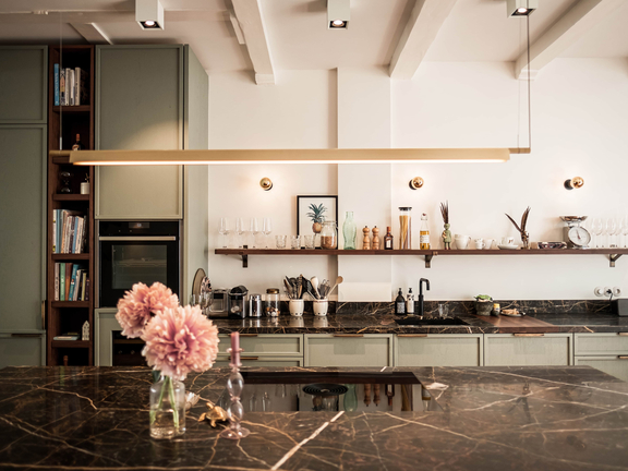 Soms in stralend geelgoud, soms in mysterieuze blauwtinten: De marmering, het aangename gevoel en de functionele eigenschappen maken van marmer een favoriet voor keukenontwerp. Hoe combineer je marmer in de keuken om een indrukwekkend geheel te creëren? We hebben ideeën voor je.