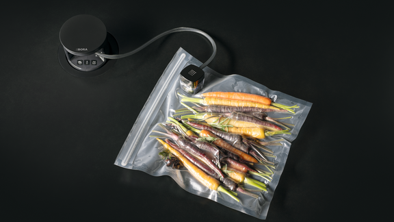 De combinatie van vacumeren en invriezen zorgt voor een optimale houdbaarheid en voorkomt vriesbrand. Die ontstaat doordat er lucht bij het ingevroren voedsel komt, waardoor het oppervlak uitdroogt. Omdat gevacumeerde levensmiddelen luchtdicht verpakt zijn, kan er geen vriesbrand ontstaan. Door eten eerst vacuüm te trekken met de BORA QVac en daarna in de BORA X BO te koken met het speciale programma ‘Sous-vide koken’, kost het haast geen moeite om gerechten op tafel te zetten die met recht restaurantwaardig zijn.