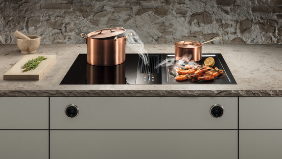 The purist, minimalist look of BORA Classic 2.0 enables it to blend in elegantly with any modern kitchen design, without taking over. A real head-turner of the modular system is the new vertical slider (sControl+) with its smooth hollow, which enables extremely precise, intuitive operation. The deep black operating panel is virtually invisible in standby mode (“Black Vision” technology) and is centrally positioned below the extractor.