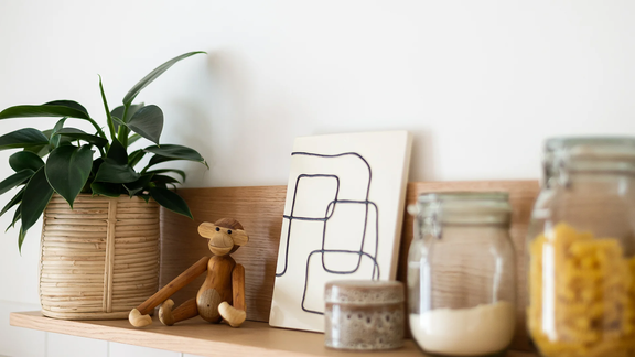 Gebruik voorwerpen die je nodig hebt in de keuken op een esthetische manier en zet ze in de kijker. Praktische keukenaccessoires die ook een unieke sfeer creëren zijn bijvoorbeeld